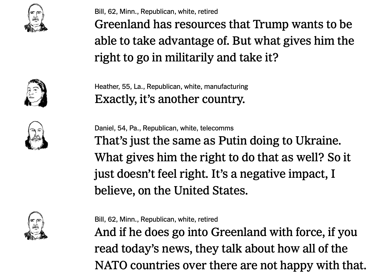 “What gives him the right to go in militarily and take it?” asked Bill, 62, of Minnesota.