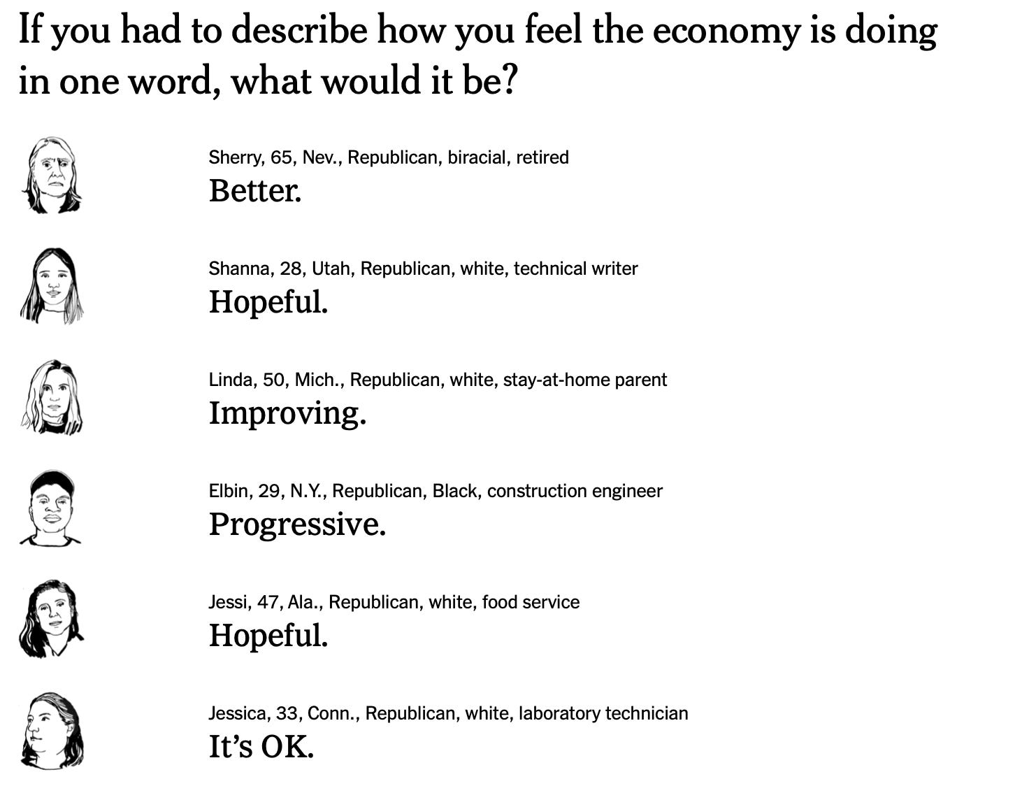 Only Jessica, 33, of Connecticut, broke from the trance. “Prices on everything are insane,” she said. “I don’t even look at my 401(k) anymore because I don’t really have any hope that I’ll retire.”