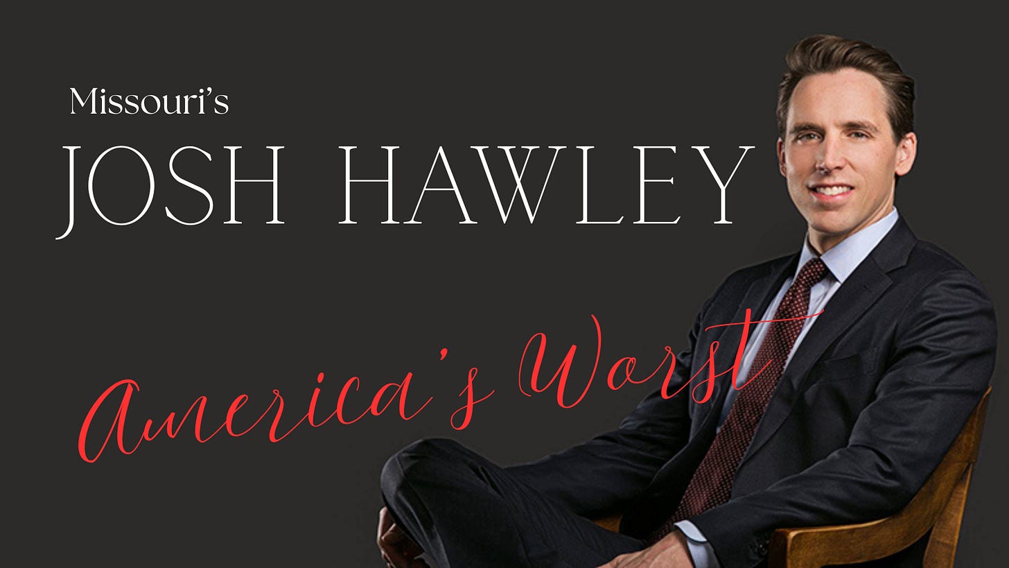 This is, of course, the same Josh Hawley who pumped his fist at the January 6th mob from behind police barricades—brave warrior of the people!—then was caught on security footage sprinting through the Capitol like he’d heard there was a sale at Brooks Brothers. The January 6th committee played it in slow motion, because some things deserve to be savored. The same Hawley who campaigned against “career politicians climbing the ladder,” then climbed from Attorney General to Senate in two years. The same Hawley whose office “knowingly and purposefully” violated Missouri’s transparency laws to hide his campaign activities—costing the state $240,000 in legal fees—after spending years attacking Hillary Clinton for her emails. The same Hawley who promised he’d “never support Medicaid cuts,” voted for Medicaid cuts, then introduced a bill to fix the cuts he’d just voted for, hoping Missourians have the memory of goldfish.