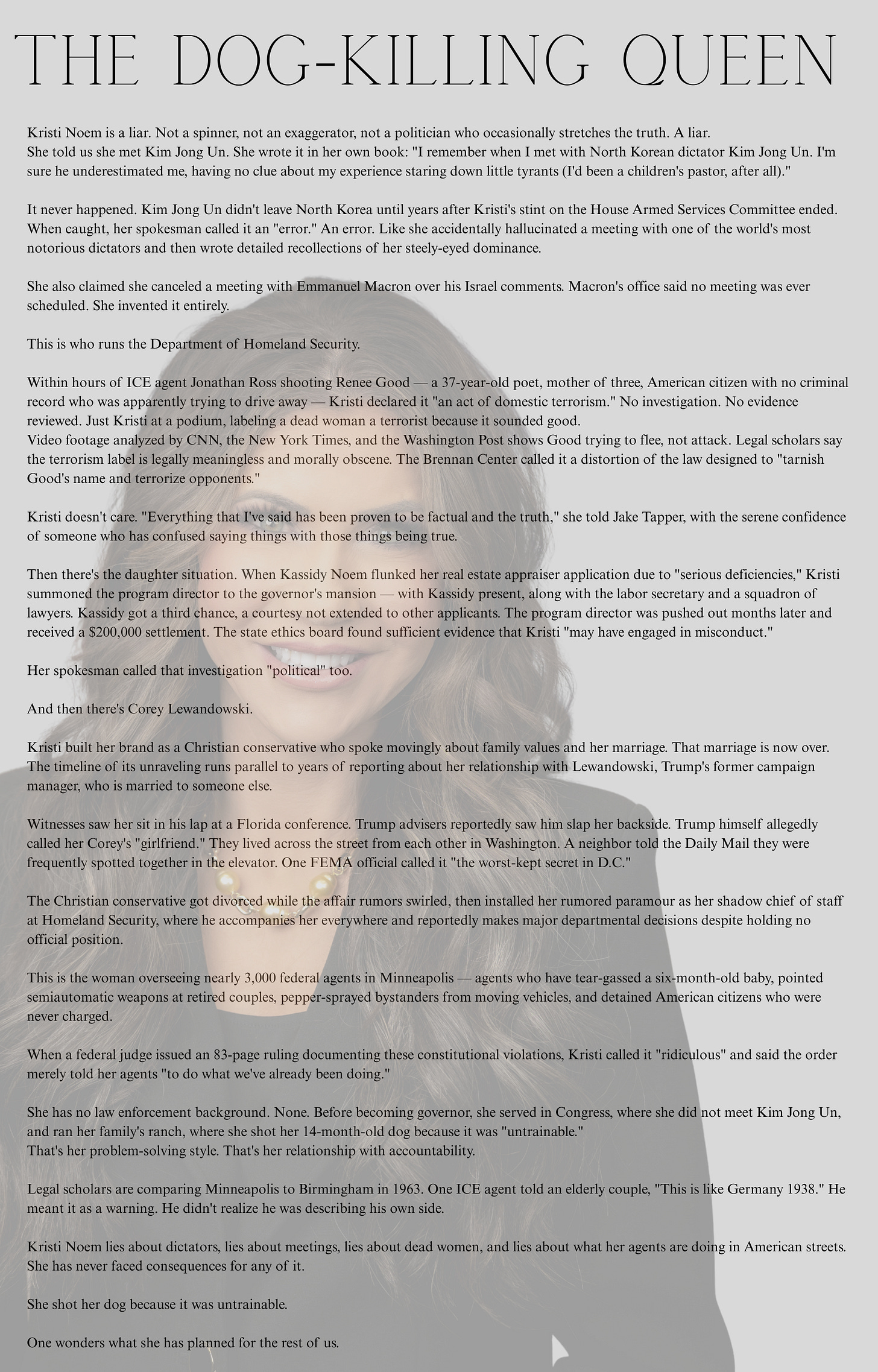 That lesbian bitch. Renee Good. A child of God, in the theology these men claim to profess. A human being made in the image of the divine. Shot through her windshield on a Tuesday morning in Minneapolis.