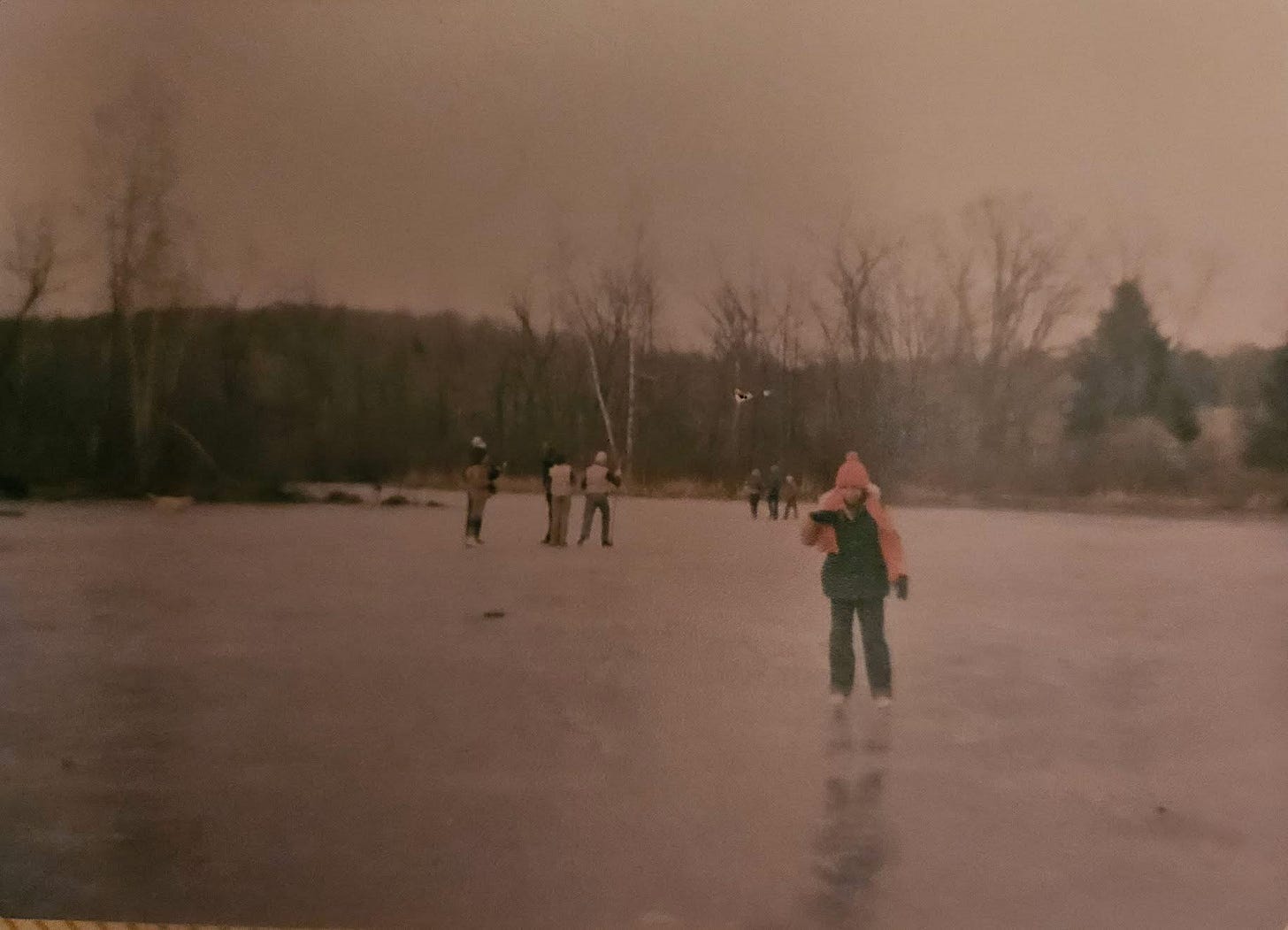 That pond was every local kid’s winter rec center. While parents would meet at Jackson’s —drinking and dining in the style of 1970s leisure — we children claimed the ice as our kingdom. Mr. Mickle, who owned the big house across from the pond—Albert Callan’s old place—installed a floodlight for us. It had a switch we could operate ourselves, a small gesture of trust that seems unthinkable in our current age of liability panic and helicopter parenting. After snowstorms, we’d descend like a swarm, the sound of skates scraping and shovels pushing snow off ice creating that particular music of childhood—the metallic scritch-scratch punctuated by laughter and hockey sticks slapping pucks.