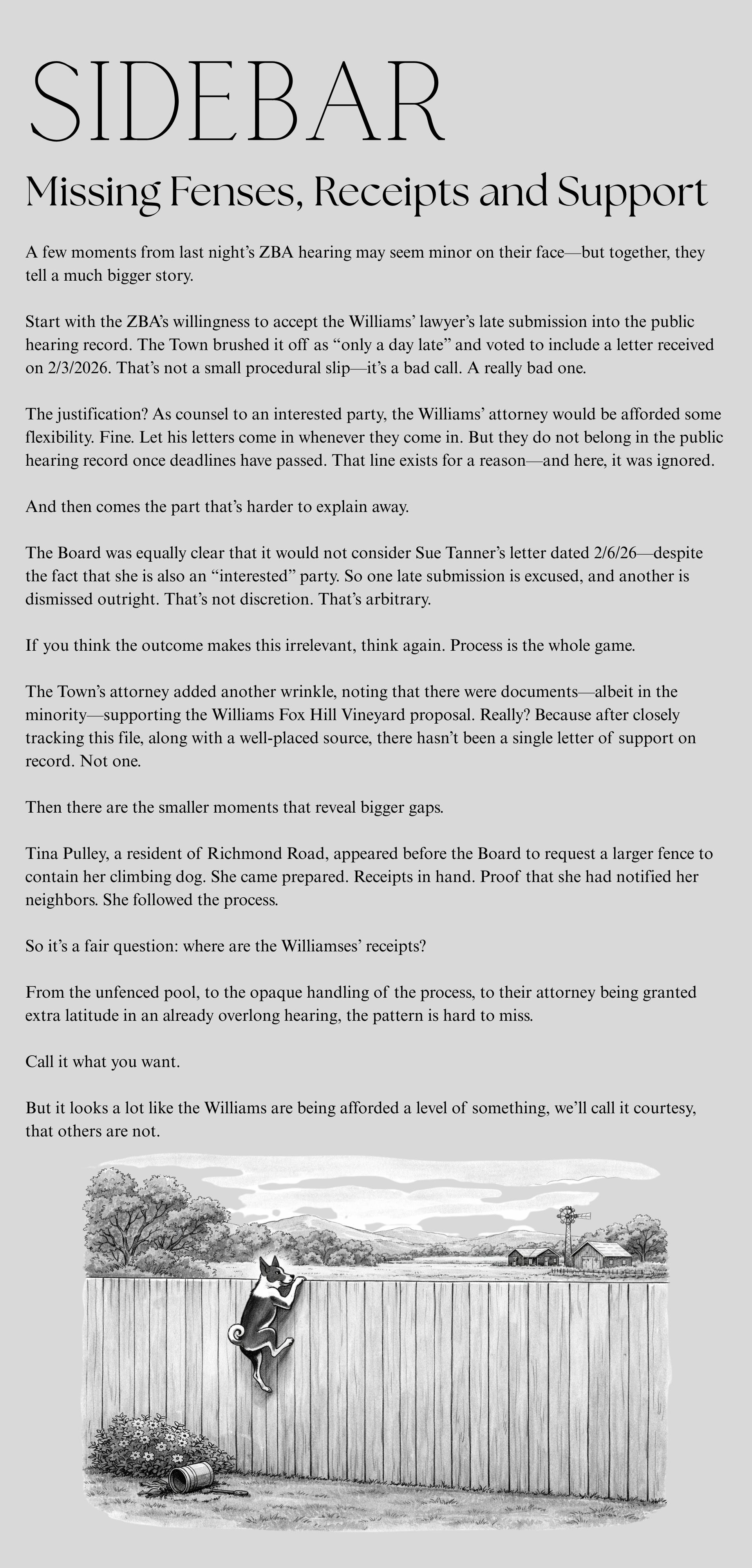 The Zoning Board of Appeals Rules Against Fox Hill Vineyard. But the Ag and Markets Laws Are Still Available to the Williamses. Oh, and What About All Those Fibs? And Those Ethics Issues?