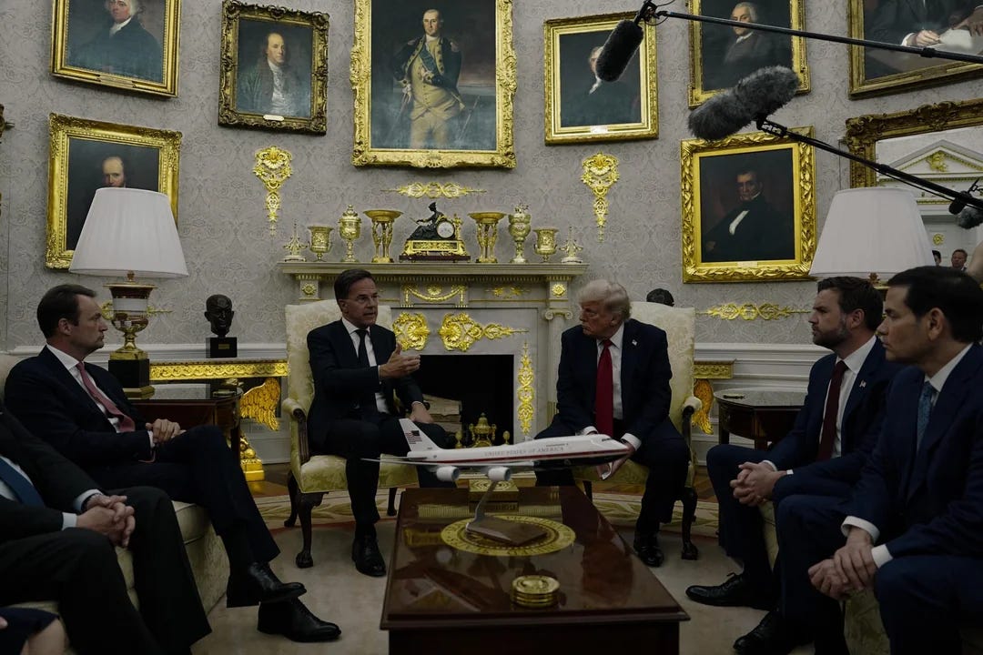 Trump flew his personal “gold guy” from Mar-a-Lago to Washington on Air Force One to add gold medallions, frames, mirrors, cherubs, eagles, coasters, and moldings to the Oval Office. Some of the medallions closely resemble polyurethane appliqués sold on Alibaba for $1 to $5 each. None of the items on the mantle were made in the U.S. When asked if the decorations came from Home Depot, Trump insisted they’re real gold.