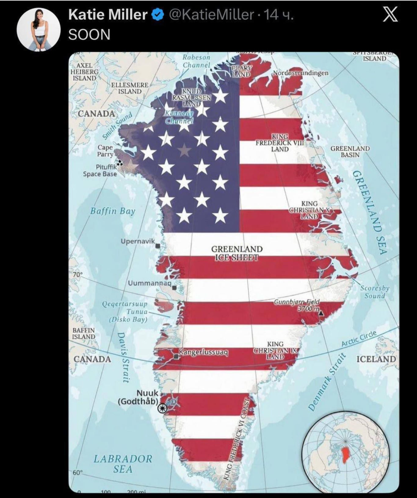 Danish Prime Minister Mette Frederiksen spelled out what should be obvious: “If the United States attacks another NATO country, everything stops, including NATO.” Everything. The entire post-World War II security architecture collapses. But Trump’s too busy imagining his name on Arctic real estate. He claimed Greenland is surrounded by Russian and Chinese ships that Danish military officials confirm “do not exist.” He mocked Danish defenses—”they added one more dog sled”—while his deputy’s wife posts maps of American flags covering sovereign territory captioned “SOON!”