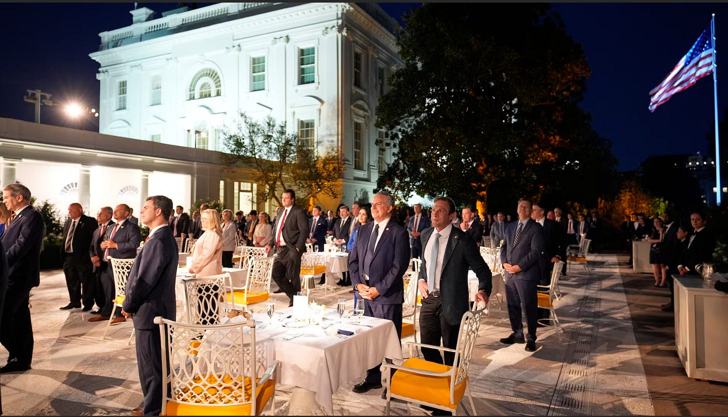 There’s something so repulsive about the spectacle of Trump’s “Rose Garden Club” that it seems to only have been possible in this specific time. Trump time. On September 5, as the president unveiled his $2 million renovation—yellow-and-white striped umbrellas straight out of Mar-a-Lago, embedded presidential seals in the stonework, speakers piping Billy Joel across what used to be Jackie Kennedy’s garden—Republican lawmakers gathered for the inaugural feast. House Speaker Mike Johnson, Representative Ronny Jackson, Senator Dave McCormick, arranged at corner tables draped in white linen, yellow roses, place cards announcing “The Rose Garden Club at the White House.” Rose Garden Salad (tomatoes, iceberg lettuce), followed by steak or chicken, chocolate cake for dessert. Trump, gripping his microphone like a cruise director, welcomed his guests to what he called “a club” for “people that can bring peace and success to our country.”