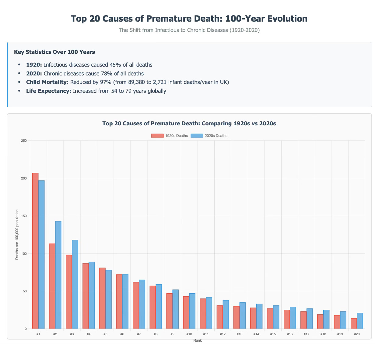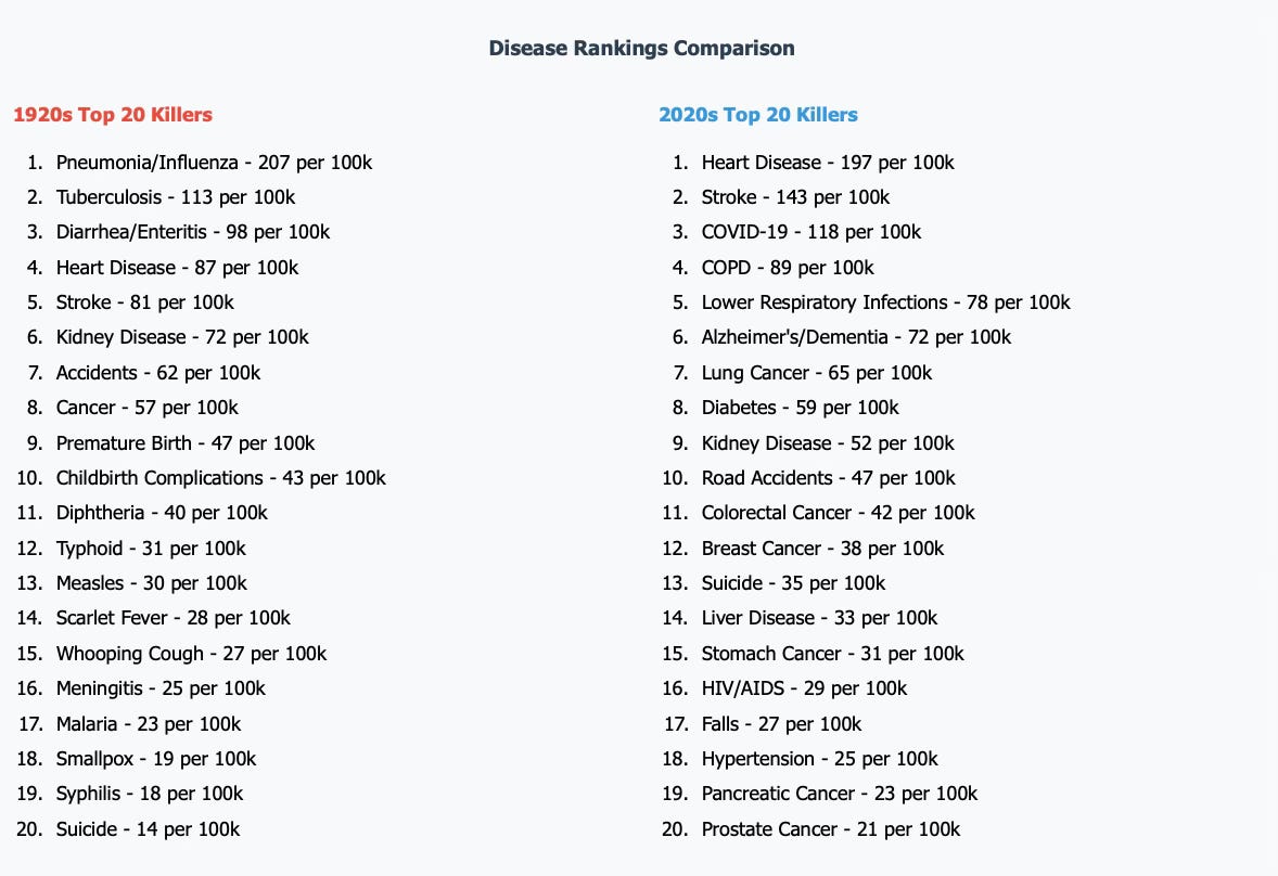 Breast Cancer didn't even make the list of Top Killers in the 1920s. And yet in the 2020s it is #12 - 38 deaths per 100,000. Wonder what caused that massive leap in deaths?